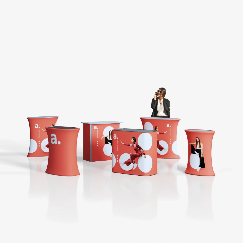 Alta visibilità giorno e notte grazie all’illuminazione LED. Perfette per negozi, uffici, fiere ed eventi pubblici.