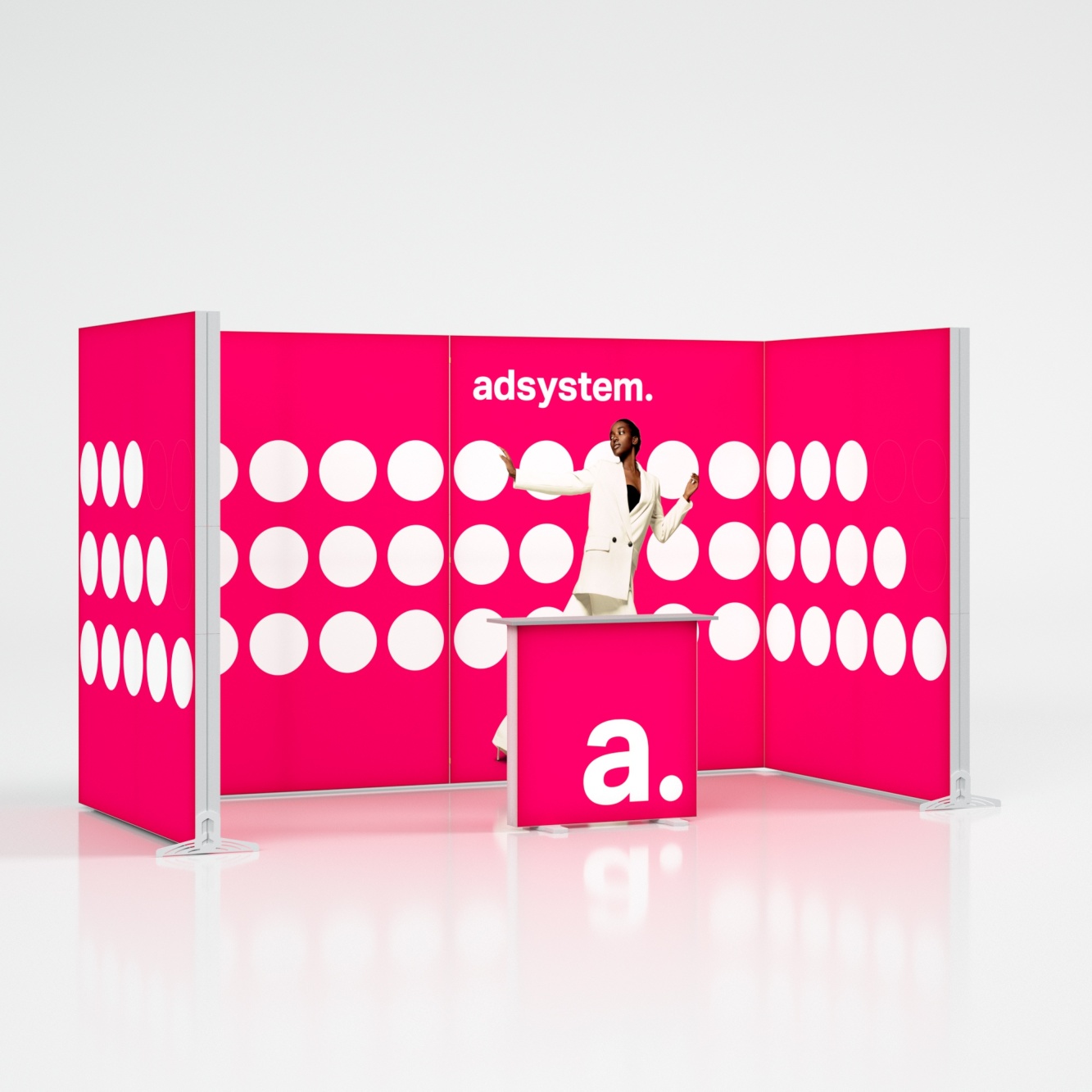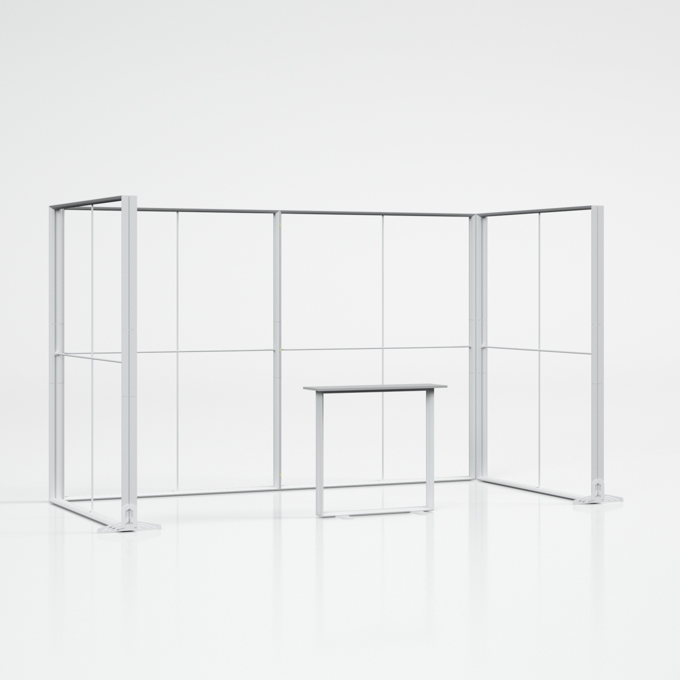 adFrame Smart 4x2 U è un set espositivo completo che consente una rapida organizzazione dello spazio fieristico. Grazie ai grandi pannelli delle dimensioni di 200 x 250 cm, il tuo stand sarà perfettamente visibile, mentre la bancarella illuminata adTribune Smart LED offrirà ulteriore spazio per la presentazione dei prodotti o per colloqui con i clienti.