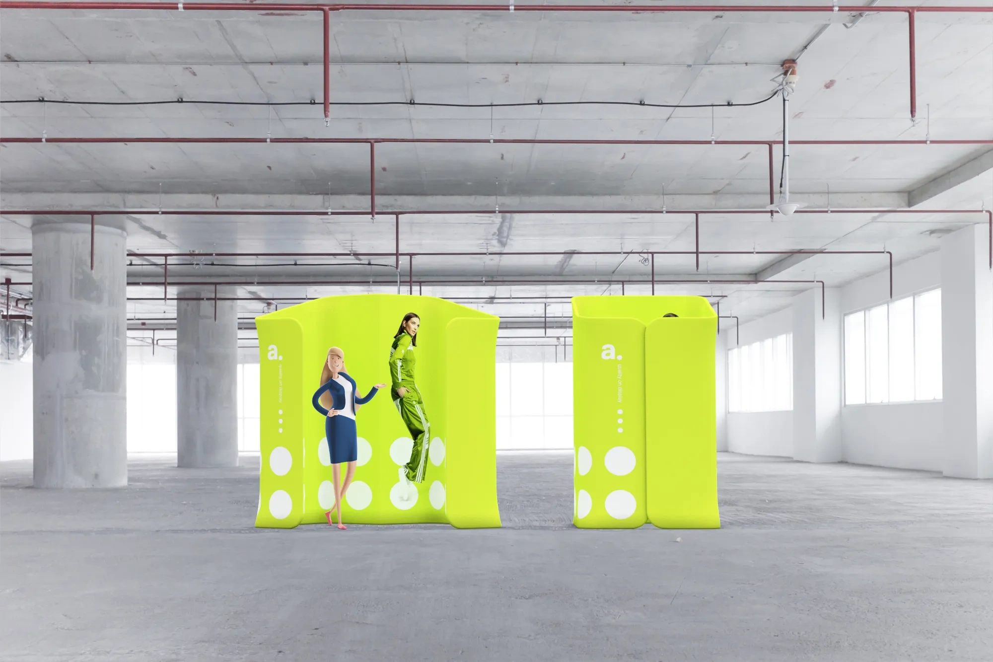 Fiere di moda: nelle fiere, adWall Vario CR funziona come una pubblicità efficace che attira i clienti allo stand del marchio. Può anche servire come spogliatoio.