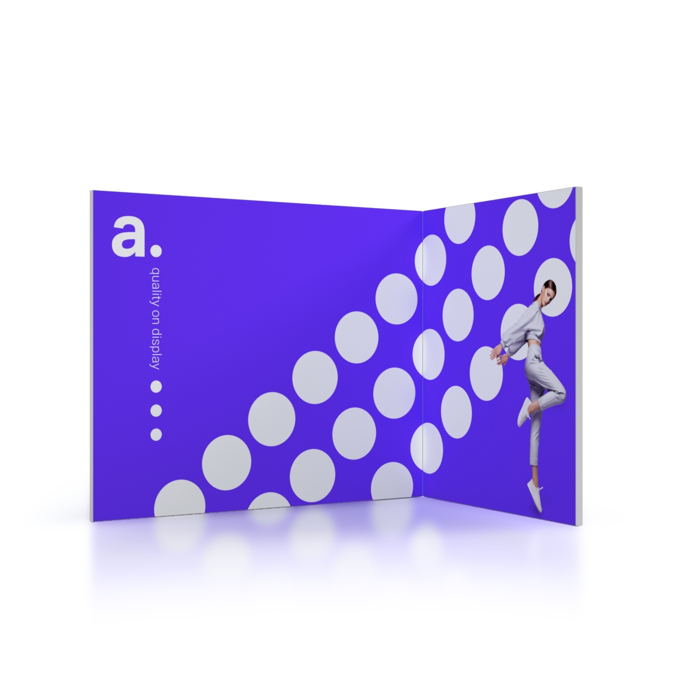 Il sistema di stand fieristici mFrame è una soluzione espositiva premium che consente di allestire rapidamente ed efficacemente uno stand d'impatto. La struttura è composta da telai in alluminio riutilizzabili e stampe con grafiche personalizzate. Grazie a questo sistema, l'allestimento degli stand fieristici consente di mettere in risalto il tuo marchio in modo efficace. Il sistema mFrame si distingue per la robustezza dei telai e il montaggio rapido senza l'uso di attrezzi, poiché i profili che compongono lo stand sono già assemblati. È importante sapere che questo allestimento fieristico non dispone di illuminazione interna, ma può essere illuminato con lampade esterne.